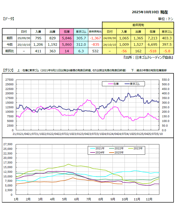 岡地株式会社ではこの発表を整理してグラフ化したレポートを都度更新しており、在庫推移と価格を時系列で見ることができます。