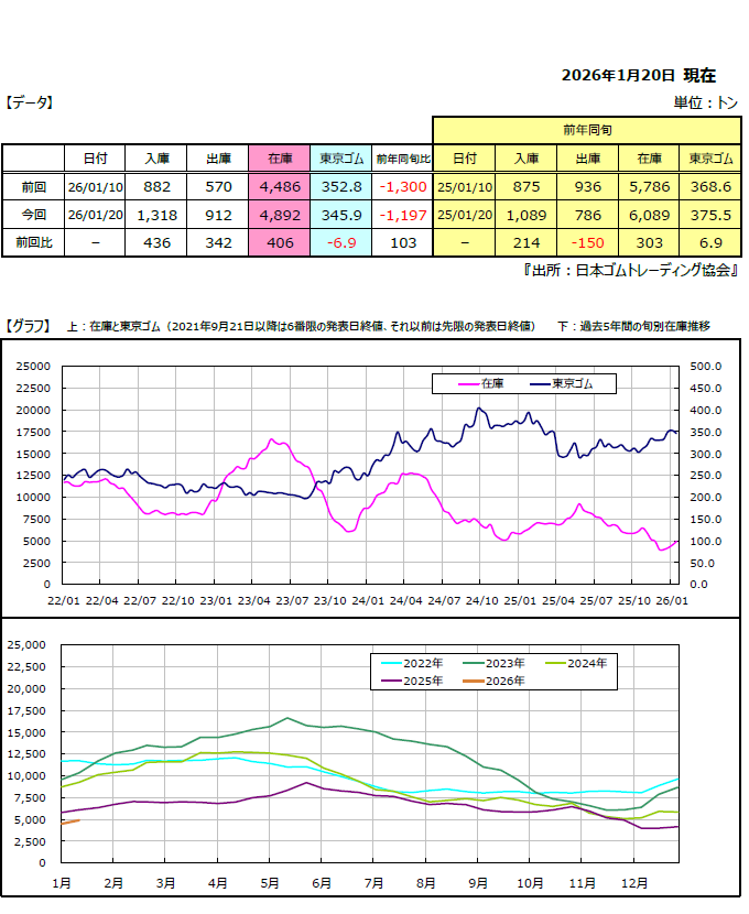 本協会より、日本国内の倉庫在庫推移、月別輸入統計などが発表されています。