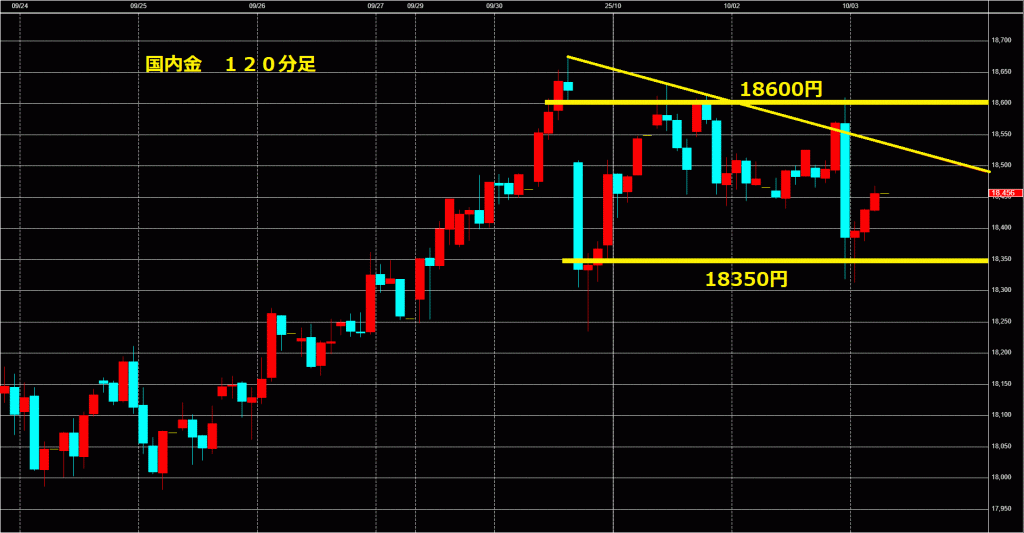 材料としては米国つなぎ予算が否決により強烈なドル安ニュースになった事からNY金が買われる一番の原因となりました。