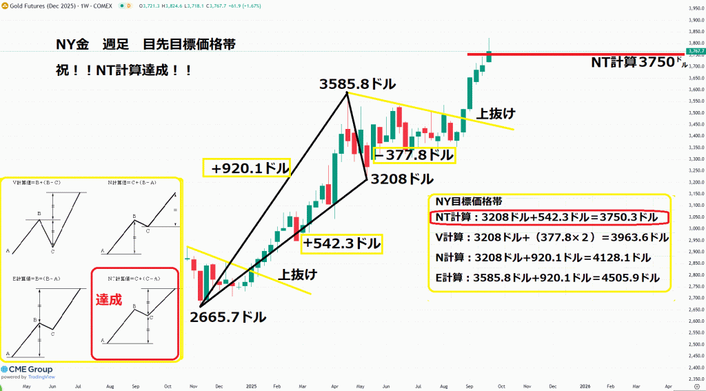 NY金価格10/2に高値ベース3923.2ドルと最高値を再び更新しましたが大引けでは3868ドル。