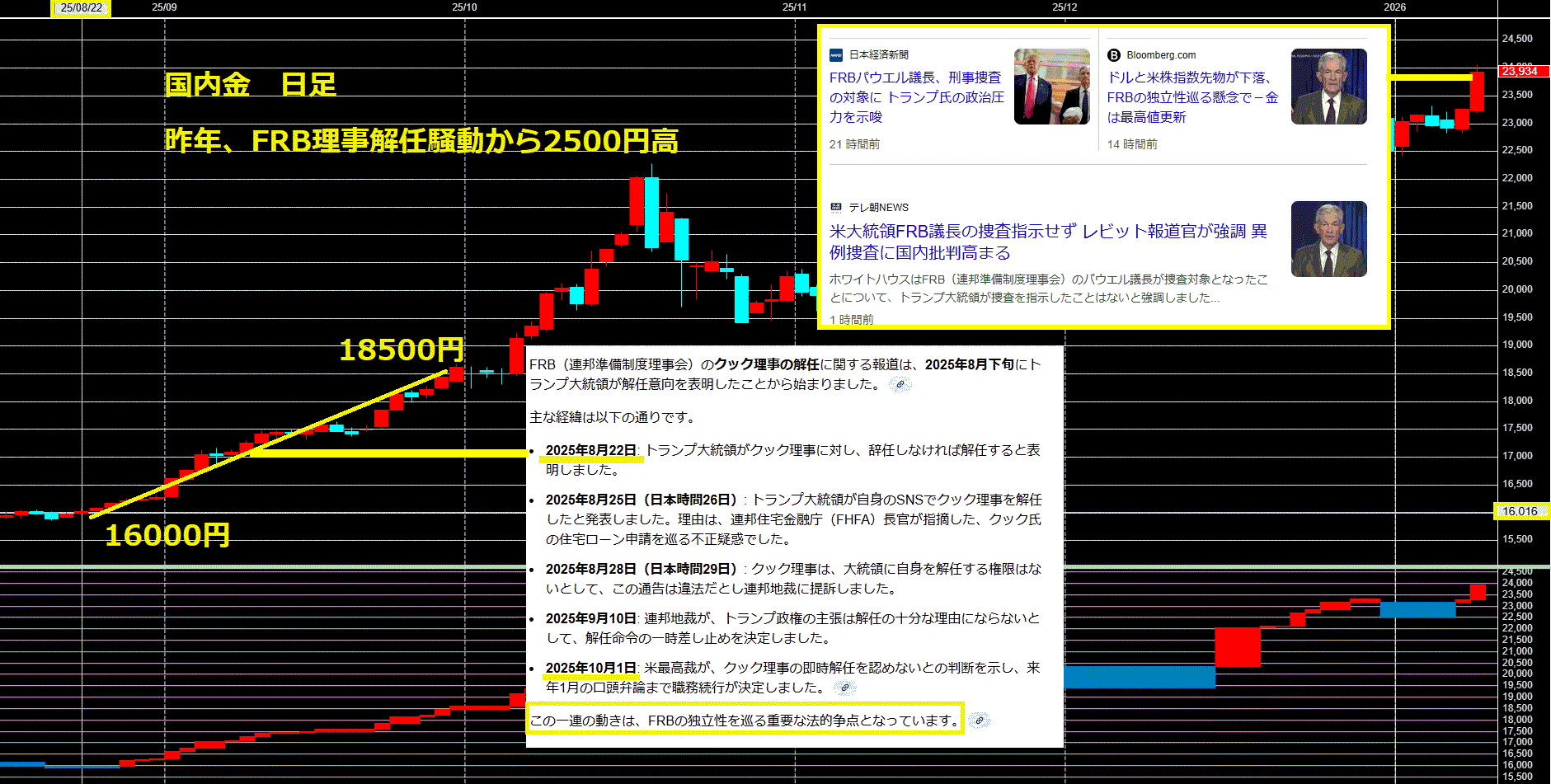 そこに次はFRBの独立性のニュースが浮上となり、次から次へと材料に事欠かない展開となっております。