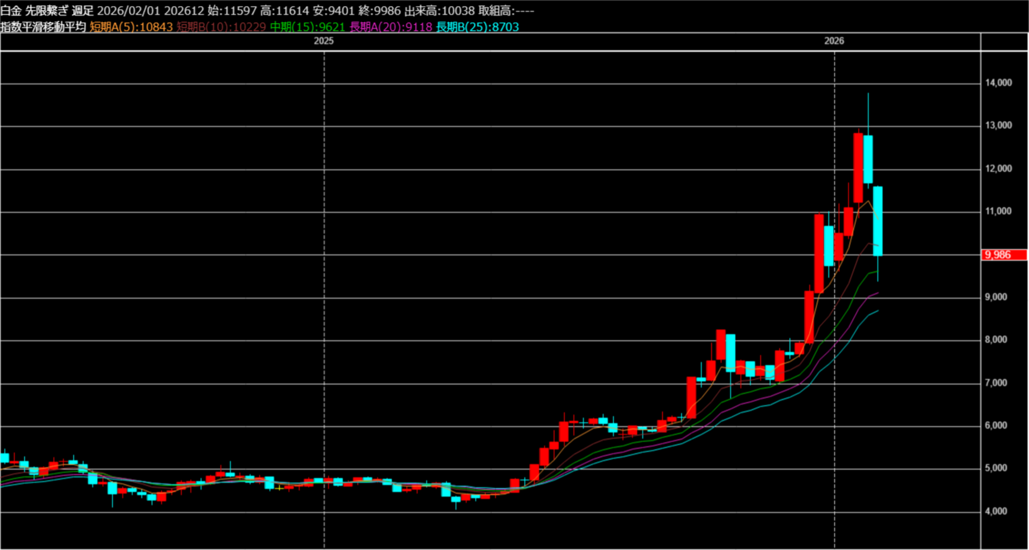 | 2026年1月5日(月) | 3月まで9000円~11000円の往来相場の白金標準先物 |