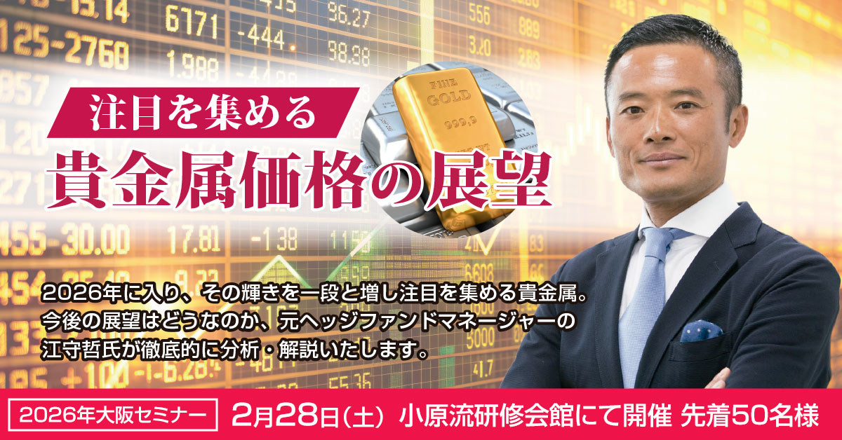 | セミナー名称 | 注目を集める貴金属価格の展望 in 大阪 |