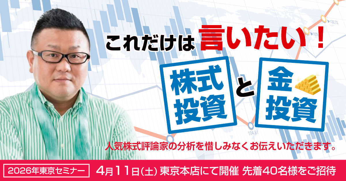 | セミナー名称 | これだけは言いたい!株式投資と金投資 in 東京 |